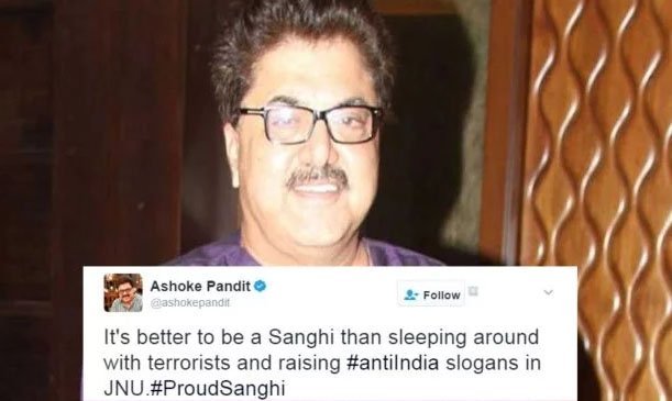 سینسر بورڈ رکن اشوک پنڈت نے جے این یو کی شہلا راشد کو دہشت گردوں کے ساتھ سونے والی بتایا تو ٹوئٹر پر ملا کرارا جواب