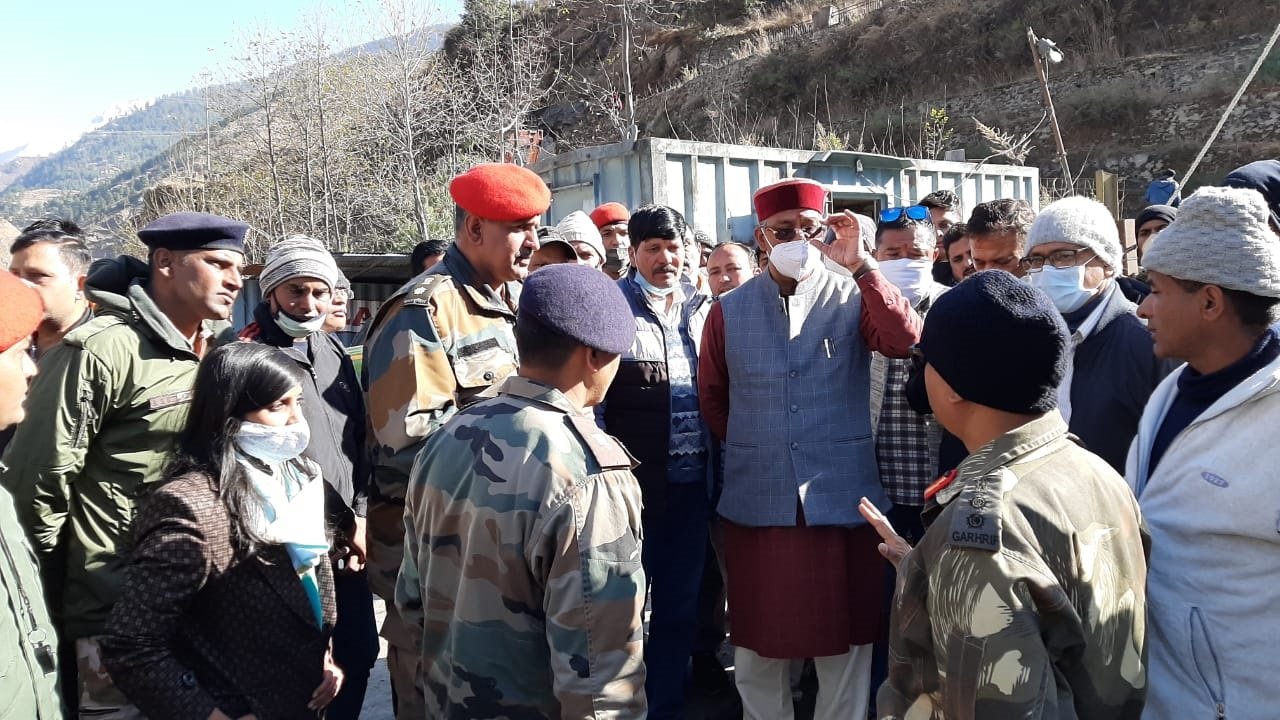 وزیر اعلی نے جوشی مٹھ کے رینی علاقے میں تباہی کے شکار علاقے کا سائٹ پر معائنہ کیا۔
