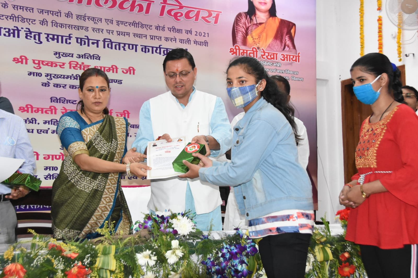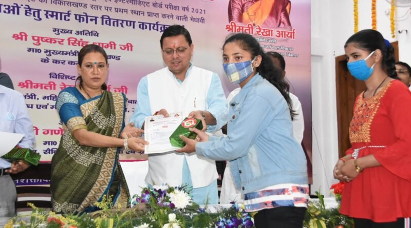 سی ایم پشکر سنگھ دھامی نے ٹاپ کرنے والی طالبات میں سمارٹ فون تقسیم کیے۔