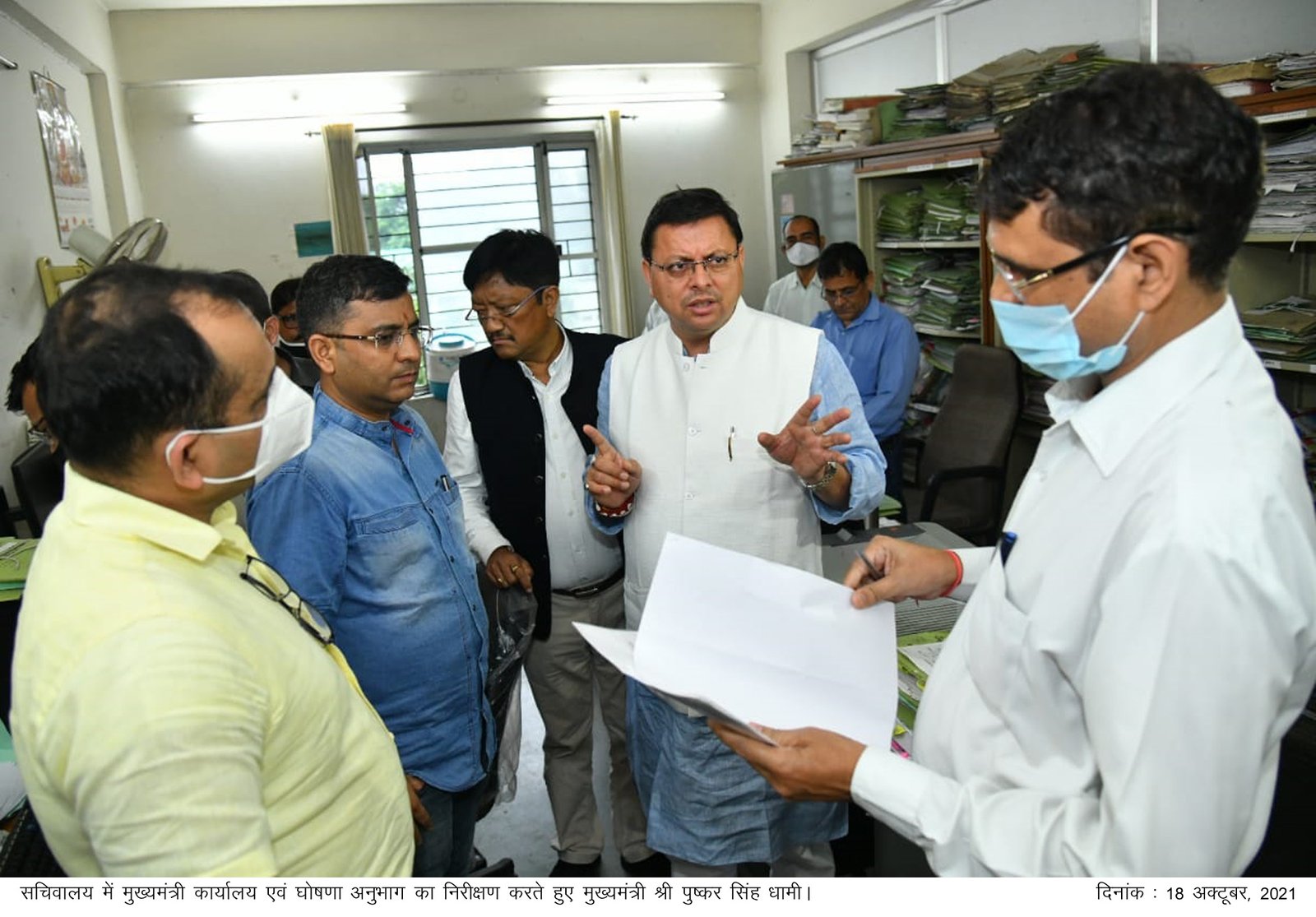 وزیراعلیٰ پشکر سنگھ دھامی نے پیر کو سیکرٹریٹ میں چیف منسٹر آفس اور اعلان سیکشن کا اچانک معائنہ کیا۔ وزیراعلیٰ نے اعلان سیکشن کی سطح پر کی جانے والی کارروائی کا معائنہ کیا اور اس حوالے سے ضروری معلومات بھی حاصل کیں۔ انہوں نے ہدایت کی کہ اعلان سیکشن میں موصول ہونے والی معلومات پر وقت کی پابندی کے ساتھ فوری کارروائی کو یقینی بنایا جائے تاکہ عوامی مفاد کو مدنظر رکھتے ہوئے کیے گئے اعلانات زمین پر نظر آئیں اور عام عوام اس کے فوائد حاصل کر سکیں۔ وزیراعلیٰ نے کہا کہ ہماری کوشش ہونی چاہیے کہ اعلانات کو بروقت عمل میں لایا جائے۔ انہوں نے کہا کہ وزیراعلیٰ آفس سے عام عوام کو بڑی توقعات ہیں۔ اس لیے عوامی توقعات کے حل کے لیے حساسیت کے ساتھ کام کیا جانا چاہیے۔ انہوں نے کہا کہ اگر ہم اپنی ذمہ داریوں کو کام میں آسان بنانے اور مسائل کو حل کرنے کے جذبے کے ساتھ انجام دیں گے تو عوام میں حکومت پر اعتماد کا احساس بیدار ہوگا۔ وزیراعلیٰ نے کہا کہ وزیراعلیٰ آفس کو موصول ہونے والی عوامی شکایات اور مسائل سے متعلقہ درخواستوں کو بھی تیز رفتار سے نمٹایا جائے ، نیز درخواست گزاروں کو ان کی درخواستوں پر کی گئی کارروائی کے بارے میں معلومات فراہم کرنے کے انتظامات کیے جائیں۔ ایڈیشنل پرنسپل سکریٹری جناب ابھینو کمار ، جوائنٹ سکریٹری جناب سنجے ٹولیا اور دیگر افسران اس موقع پر موجود تھے۔
